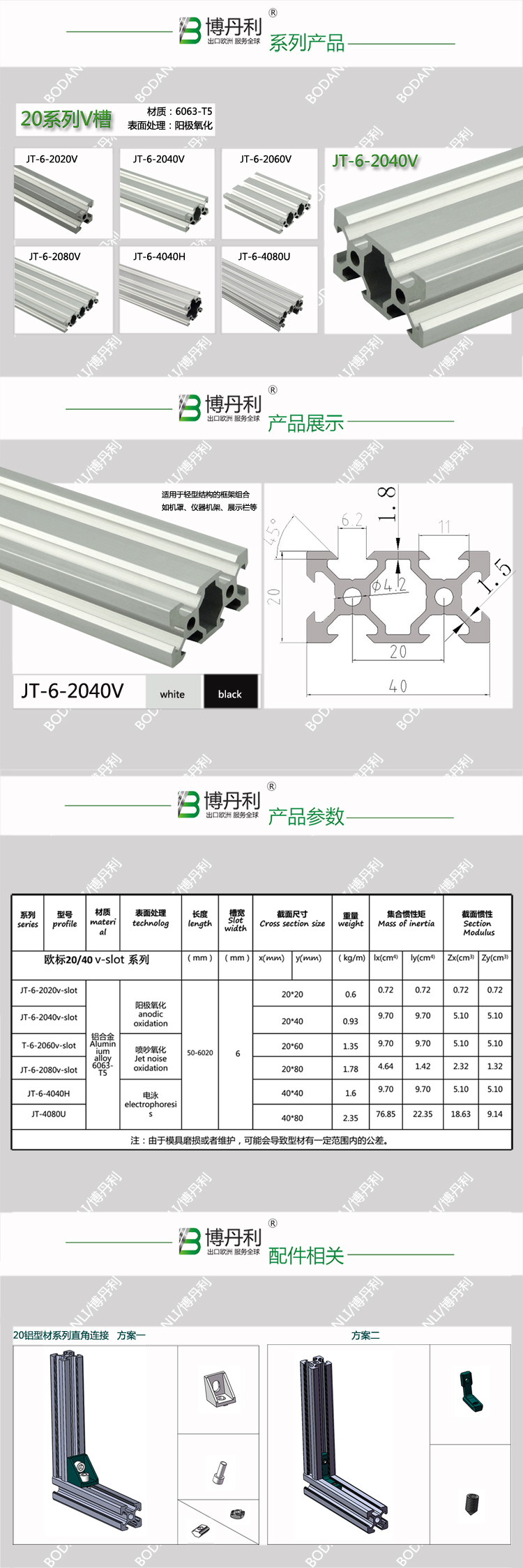 博丹利 2040v 鋁型材 銀白