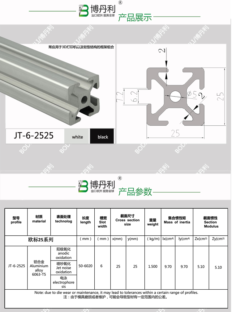 新品 博丹利 JT-8-6060黑色 鋁型材