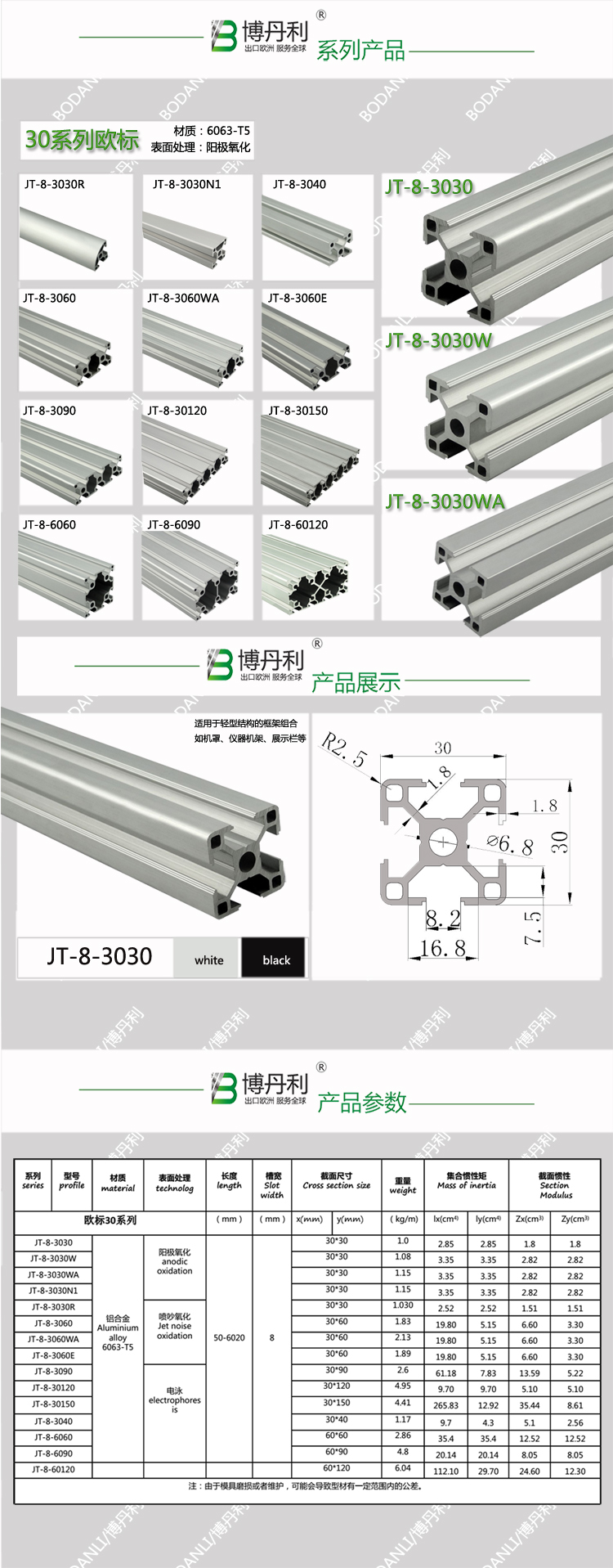 新品 博丹利 JT-8-6060黑色 鋁型材