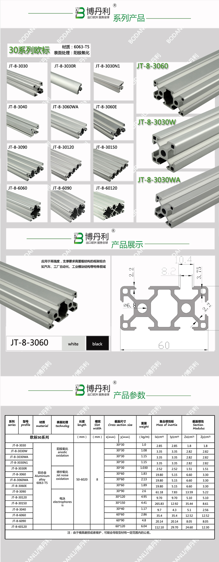 • 新品 博丹利 JT-8-6060黑色 鋁型材