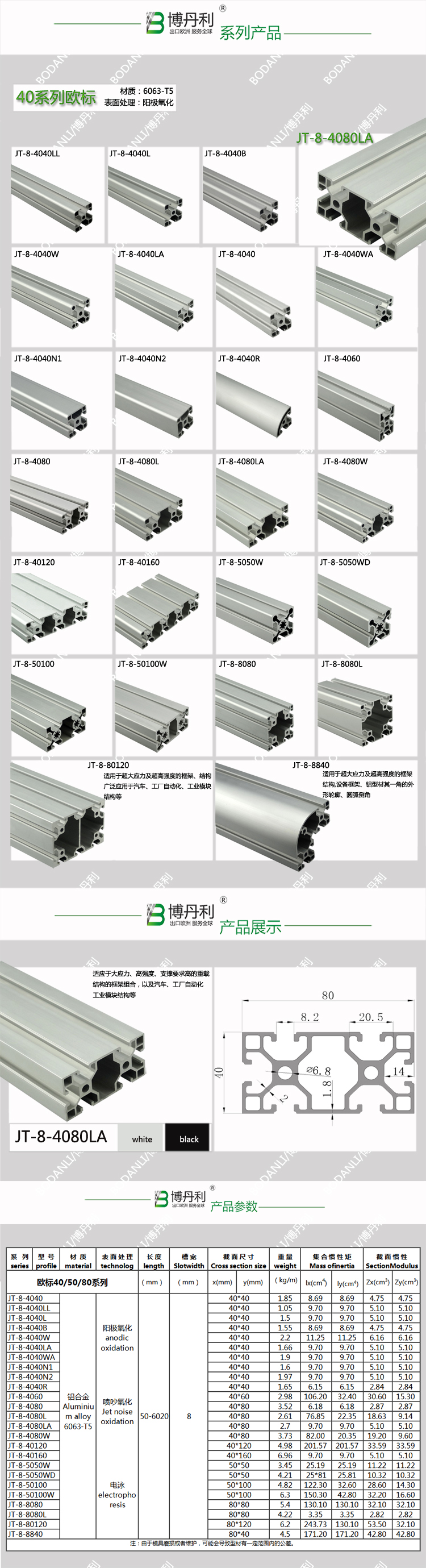 博丹利 4080LA 鋁型材 銀白