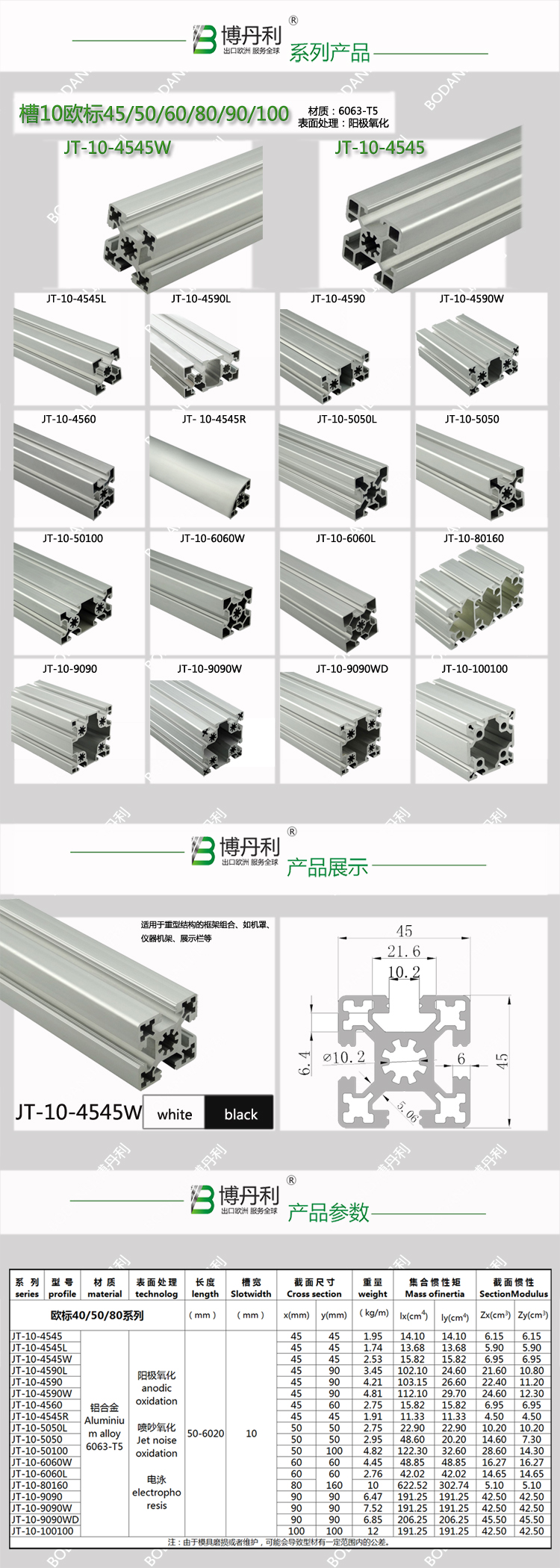 1、目前市面充斥大量低價劣質(zhì)品,偷工減料。表面處理差、鋁材大量雜質(zhì)或回收料、光澤暗淡、品質(zhì)低劣。本公司鋁材及配件都是大廠出品、建有完善的ISO9001:2000質(zhì)量管理體系,擁有成熟的生產(chǎn)技術(shù) 2、鋁材價格以米為單位、整支為6.02M。提供免費(fèi)切割,非整支購買、需加收6%的損耗(含料頭、料尾、刀片損耗)。切割誤差在±0.3MM、特殊要求誤差可以達(dá)到±0.1MM 3、可按照圖紙要求提供 沖、車、銑、鉆、攻絲等深度加工、鉆孔攻絲一元每刀,其他加工費(fèi)另算??砂凑請D紙加工各類鋁型材框架、機(jī)罩、操作臺。承接各類流水線工程。 訂購熱線:021-67725581