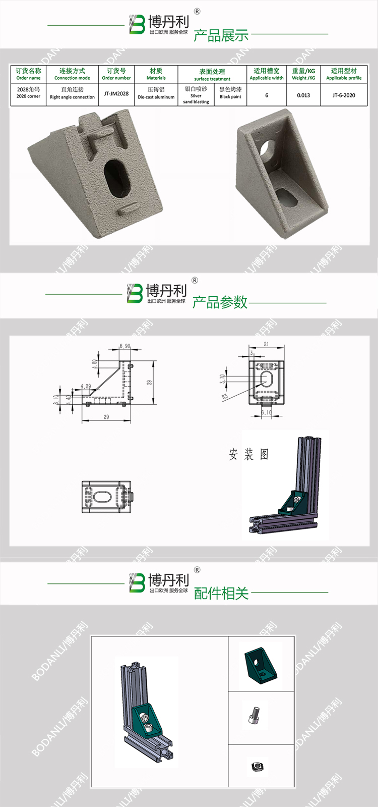 工業(yè)鋁型材JT-JM2028 角碼 銀白