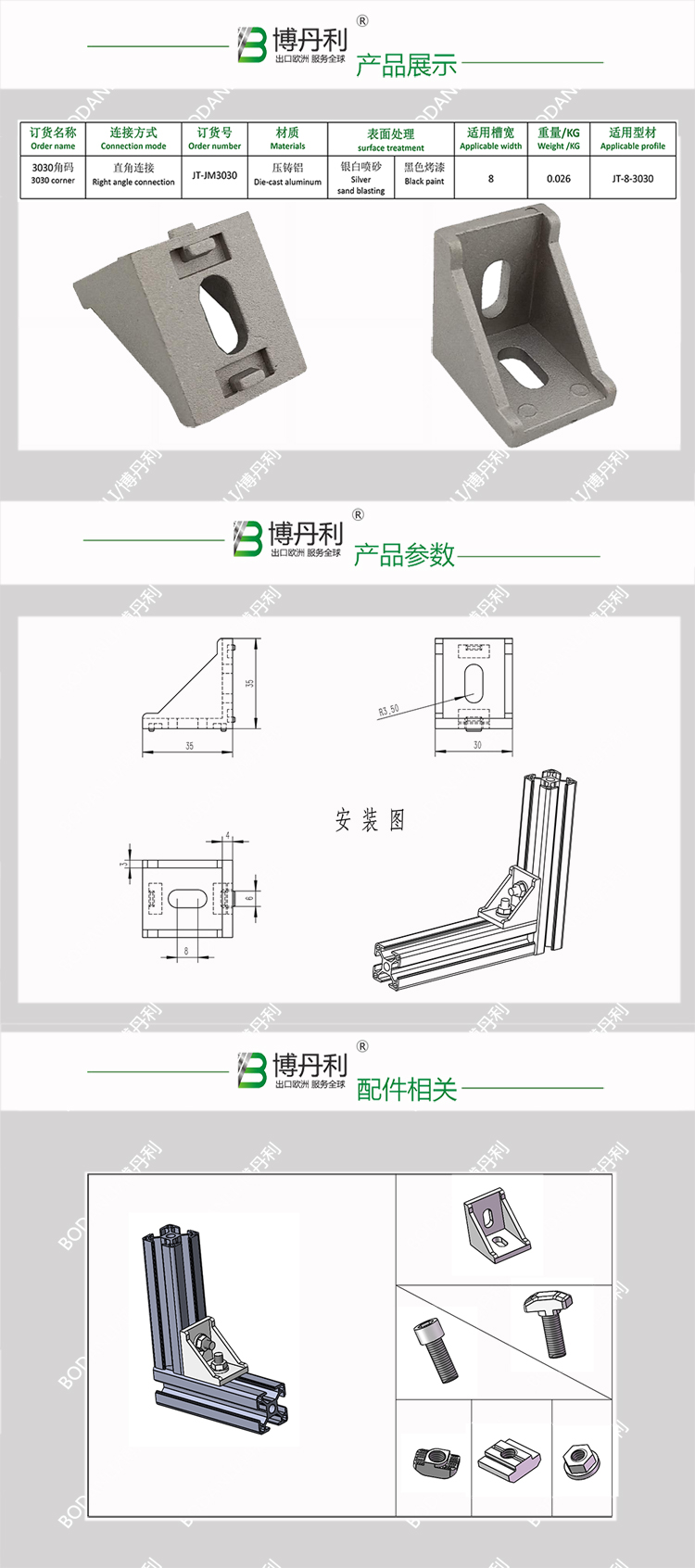 博丹利 3030 角件 銀白