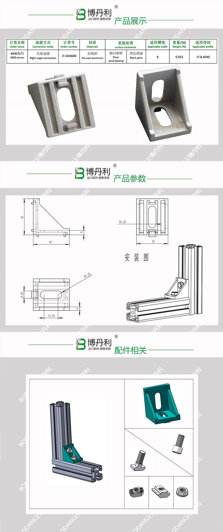 博丹利 4040 角件 銀白